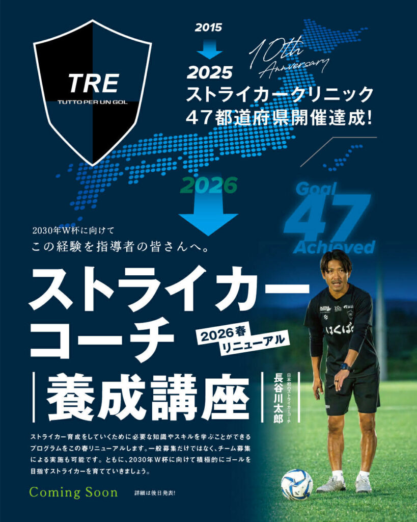2030年ワールドカップ得点王の輩出、そして世界で活躍するストライカーの育成を目指し、一般社団法人TREは、これからも長期的な視点で挑戦を続けてまいります。